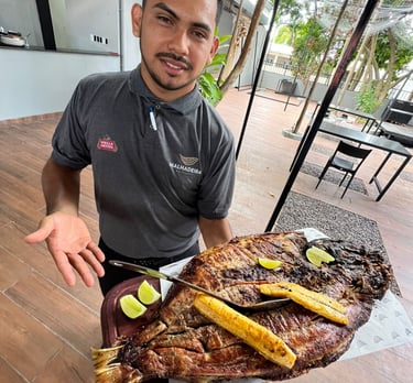 O tambaqui assado é simplesmente divino, sabor que me leva direto ao Amazonas.